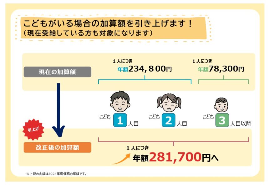 あわせて、子どもがいる場合の加算額が引き上げられます。